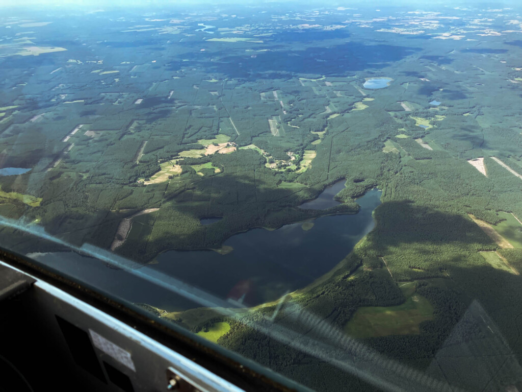 Kolejnym pozytywnym aspektem były niezapomniane widoki. Przelot odbywał się głównie w rejonie południowych Kaszub obejmując przy tym obszar od Grudziądza przez Chojnice w kierunku Piły. Widok rozciągającego się po horyzont sosnowego lasu, malowniczych pól oraz krystalicznych jezior na długo zapisze się w mojej pamięci.